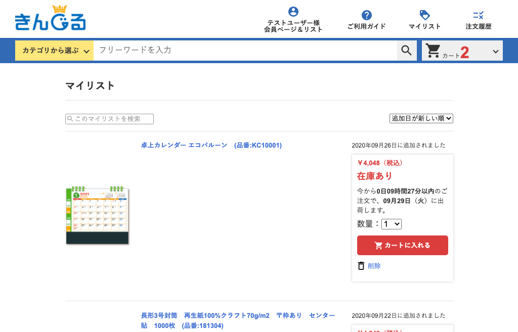 (2)マイリストに追加した商品は『マイリスト』ページで確認する事ができます。