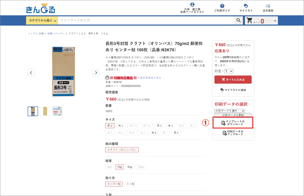 印刷対応商品を選択された場合、印刷データのテンプレートを取得できます。