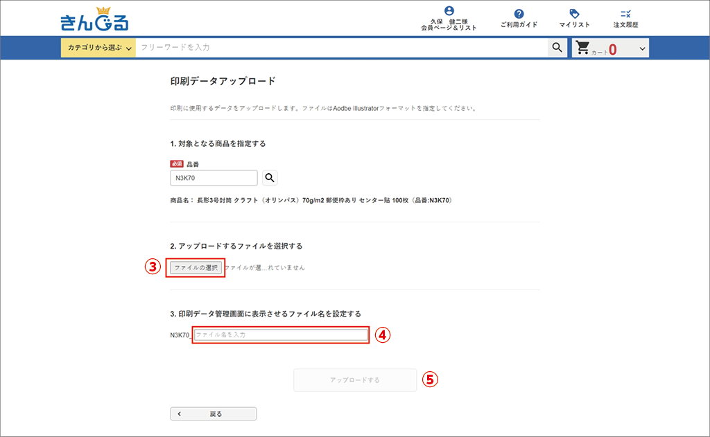 ※印刷機能のご利用には会員登録が必須となります。アップロード時、サイトへログインしていない場合はログインもしくは会員登録の画面が表示されます。ログインするか会員登録のお済みでないお客様は画面の案内に従い、会員登録をお願いします。