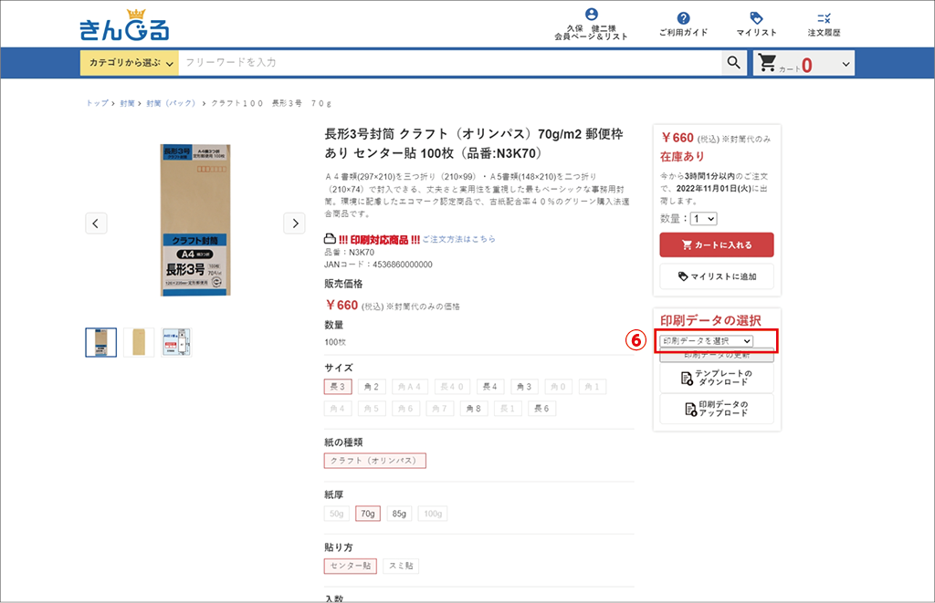 商品によっては、商品詳細ページでサイズや紙の種類などをご選択いただく事ができます。